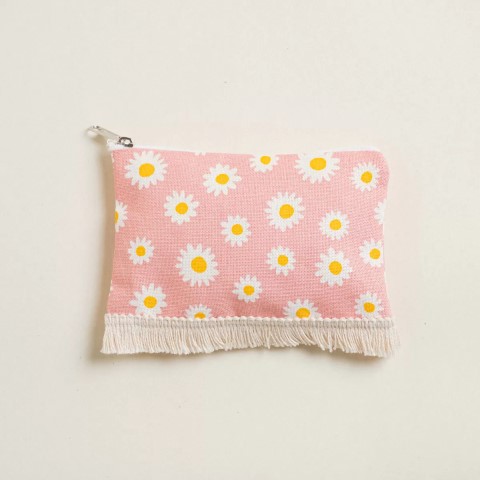 Μπομπονιέρα βάπτισης για κορίτσι πορτοφολάκι με μαργαρίτες και πέντε κουφέτα Χατζηγιαννάκη. Διαστασεις: 9x16εκ.