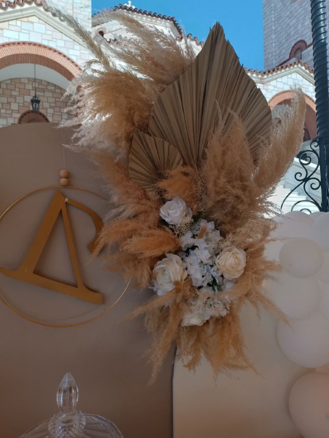 Ένας στολισμός βάπτισης με pampas grass που αποπνέει φυσική κομψότητα και διακριτική πολυτέλεια. Οι απαλές αποχρώσεις και η αέρινη υφή των pampas δημιουργούν μία ζεστή, boho ατμόσφαιρα, ιδανική για μία ξεχωριστή ημέρα. Ένα αποτέλεσμα κομψό, σύγχρονο και απόλυτα καλαίσθητο.