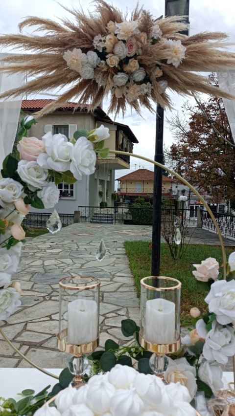 Με boho αέρα και όμορφες λεπτομέρειες ο γάμος του Κωνσταντίνου και της Μαριάνθης άφησε τις καλύτερες εντυπώσεις. Συνθέσεις λουλουδιών με pampas, ευκάλυπτο, ροδακινί και λευκά τριαντάφυλλα, αέρινα υφάσματα, και μοναδικά διακοσμητικά στοιχεία, αποτυπώνουν άψογα την υπέροχη ατμόσφαιρα της ημέρας!