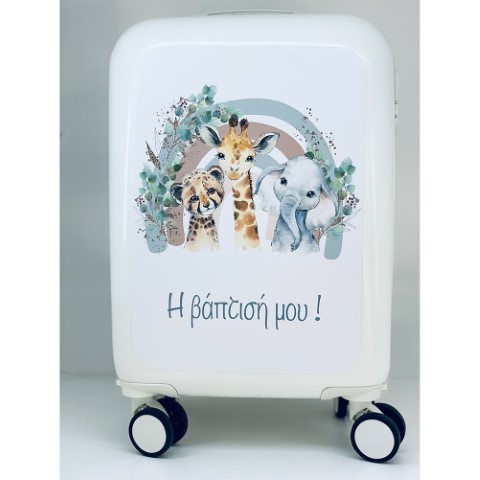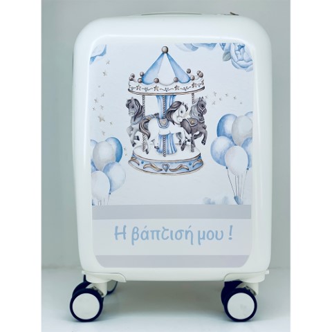 Βαλίτσα βάπτισης με θεματική εκτύπωση. Υπάρχει δυνατότητα επιλογής εκτύπωσης με το θέμα επιλογής σας, Συνδυάζεται με την αντίστοιχη λαμπάδα, λαδόπανο και λαδοσέτ. Διαστάσεις: 52x32x20εκ.