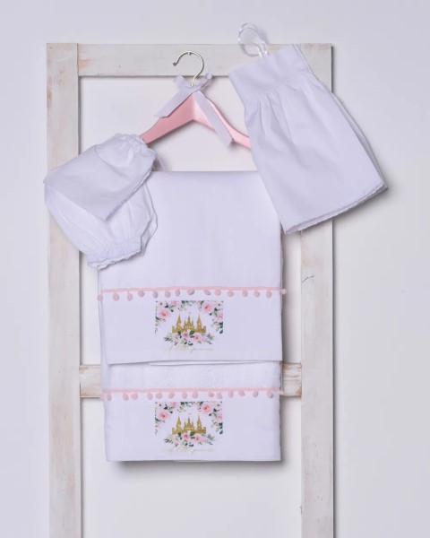 Σετ λαδόπανα βάπτισης για κορίτσι με θέμα κάστρο. Το σετ περιλαμβάνει πετσέτα, σεντόνι, εσώρουχα και καπελάκι. Δυνατότητα εκτύπωσης του δικού σας θέματος.