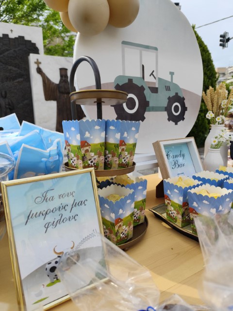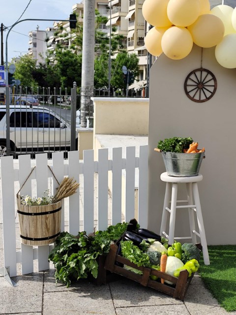 Ο στολισμός βάπτισης με θέμα τη φάρμα δημιουργεί ένα ζεστό και χαρούμενο σκηνικό, εμπνευσμένο από τη φύση και την απλότητα της εξοχής. Φυσικά υλικά, γήινες αποχρώσεις και παιχνιδιάρικα στοιχεία της φάρμας συνδυάζονται αρμονικά, προσφέροντας μία ευχάριστη ατμόσφαιρα. Ένα καλαίσθητο concept που ισορροπεί ανάμεσα στο φυσικό και το μοντέρνο. Ιδανικό για μία ξεχωριστή και αξέχαστη βάπτιση.