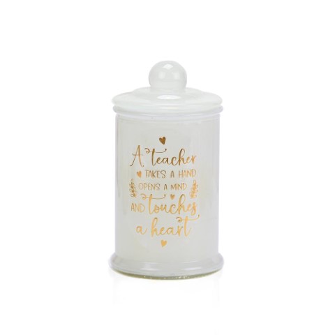 Αναδείξτε την εκτίμησή σας με ένα μοναδικό αρωματικό κερί με άρωμα fresh floral που αποπνέει φρεσκάδα και διακριτική κομψότητα. Το κερί συνοδεύεται από ένα ιδιαίτερο μήνυμα αφιερωμένο στην αγαπημένη σας δασκάλα. Διάσταση 6x11 εκ.