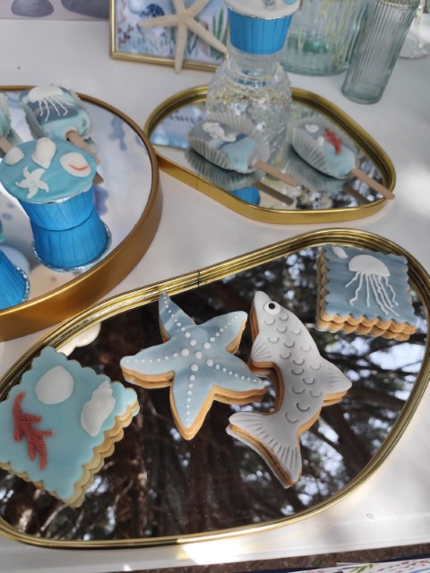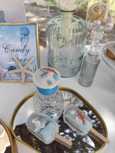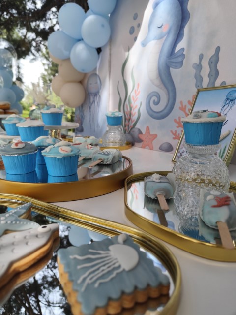 Ένα ταξίδι στον μαγευτικό κόσμο του βυθού δίνει έμπνευση σ' έναν ξεχωριστό στολισμό βάπτισης. Αποχρώσεις του σιέλ συνδυάζονται αρμονικά με χαριτωμένα θαλάσσια ζωάκια, δημιουργώντας ένα δροσερό και ονειρικό σκηνικό. Ανάλαφρες υφές και προσεγμένες λεπτομέρειες ολοκληρώνουν ένα καλαίσθητο concept που αποπνέει φαντασία και παιδική αθωότητα.