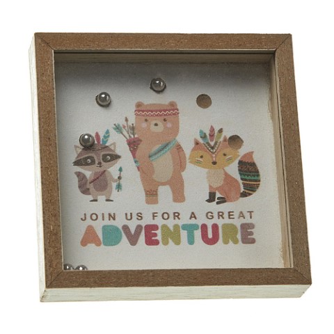 Μπομπονιέρα βάπτισης ξύλινο παιχνίδι με μπίλιες και θέμα ζωάκια του δάσους. Η μπομπονιέρα περιλαμβάνει πέντε κουφέτα Χατζηγιαννάκη. Διαστάσεις: 8x8x4εκ.