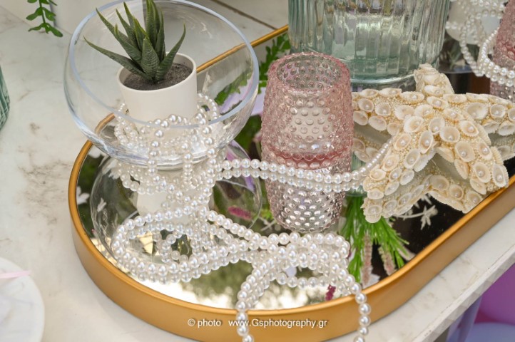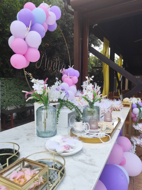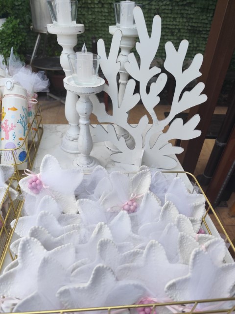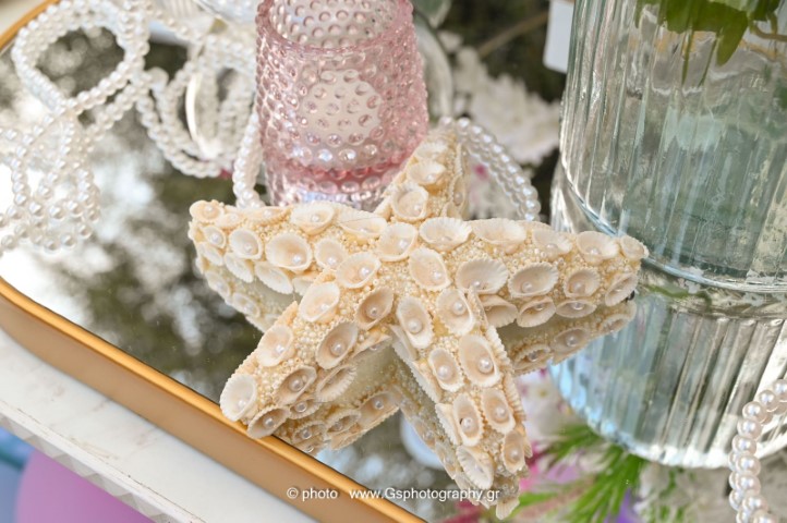 Ο στολισμός βάπτισης για κορίτσι με θέμα τον βυθό δημιουργεί έναν μαγικό, παραμυθένιο κόσμο γεμάτο χρώμα και φαντασία. Ροζ, μωβ και τιρκουάζ αποχρώσεις συνδυάζονται με κοχύλια, αστερίες και θαλάσσια στοιχεία προσφέροντας μία τρυφερή και ονειρική ατμόσφαιρα. Κάθε λεπτομέρεια είναι σχεδιασμένη με αγάπη, για να χαρίσει μία αξέχαστη εμπειρία σ' έσας και στους καλεσμένους σας.