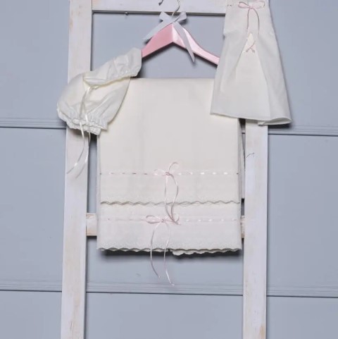 Σετ λαδόπανα βάπτισης για κορίτσι με λευκή βαμβακερή δαντέλα. Το σετ περιλαμβάνει πετσέτα, σεντόνι, εσώρουχα και καπελάκι.