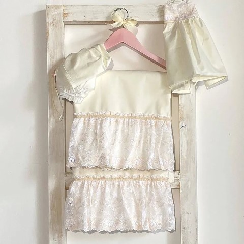 Σετ λαδόπανα βάπτισης για κορίτσι με ιβουάρ δαντελα. Το σετ περιλαμβάνει πετσέτα, σεντόνι, εσώρουχα και καπελάκι.