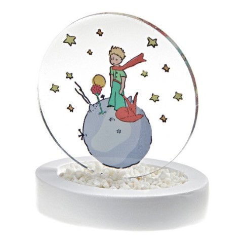 Μπομπονιέρα plexiglass σε κεραμική βάση με θέμα μικρός πρίγκιπας. Η μπομπονιέρα περιλαμβάνει πέντε κουφέτα Χατζηγιαννάκη. Διαστάσεις: ύψος 7εκ.