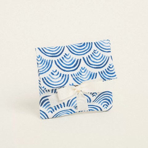Μπομπονιέρα βάπτισης πουγκί (διατάσεων 17x12εκ.) διπλώνει και κλείνει με κορδέλα. Περιέχει πέντε κουφέτα Χατζηγιαννάκη.