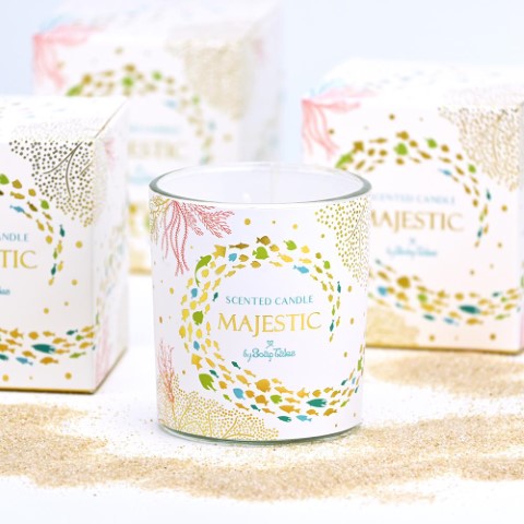 Μπομπονιέρα κερί σε μοναδική συσκευασία και άρωμα majestik. Περιλαμβάνει πέντε κουφέτα Χατζηγιαννάκη. Διάσταση κουτιού: 7,3x7,3x8,5εκ. Διάσταση κεριού: 7x6,5x8 εκ.