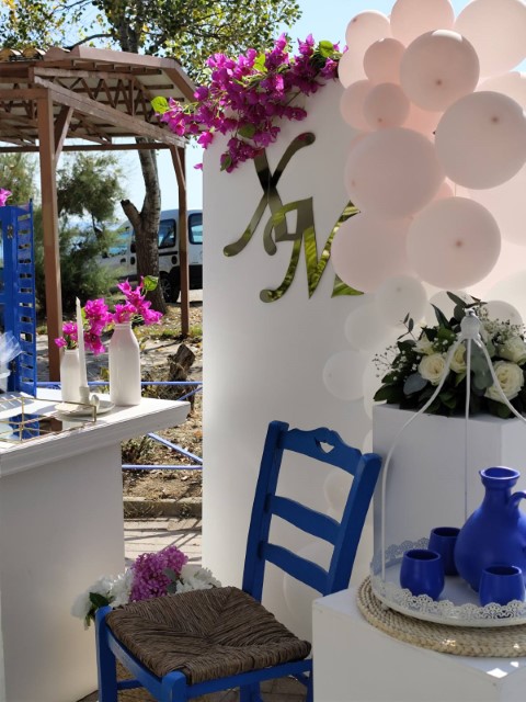 Όμορφο νησιώτικο σκηνικό για τον γάμο της Χριστίνας και του Μάνου και την βάπτισης της κορούλας τους. Απλότητα και κομψότητα με φόντο το γαλάζιο του Αιγαίου.