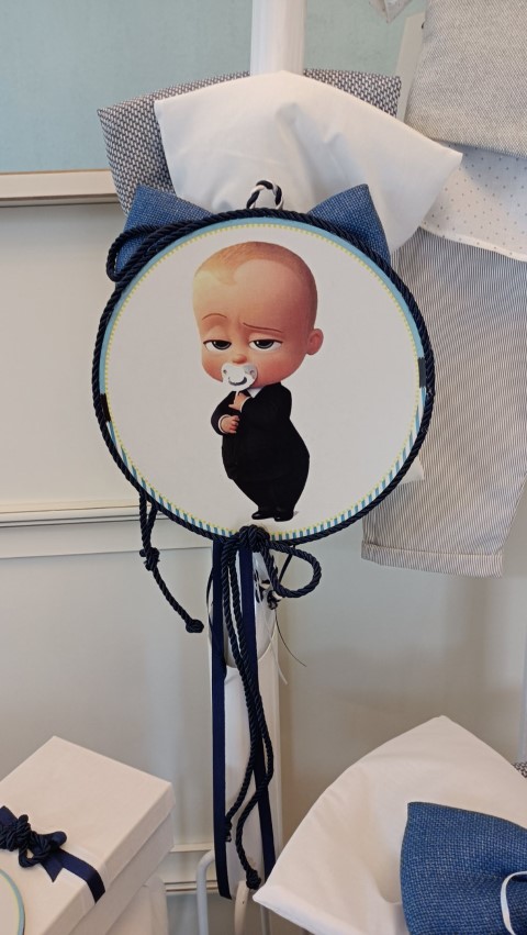 Χειροποίητη λαμπάδα βάπτισης για αγόρι, διακοσμημένη με ξύλινη θεματική πινακίδα. Συνδυάζεται με την αντίστοιχη βαλίτσα ή τσάντα, λαδόπανο και μπομπονιέρα. Μπορούν να γίνουν αλλαγές στα χρώματα, στα υφάσματα και στο θέμα της πινακίδας, κατόπιν συνεννοήσεως με το κατάστημά μας.