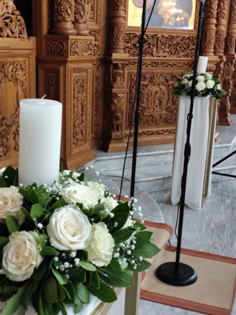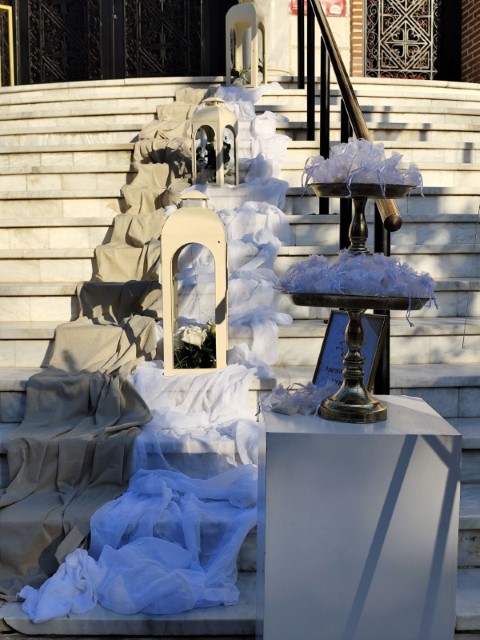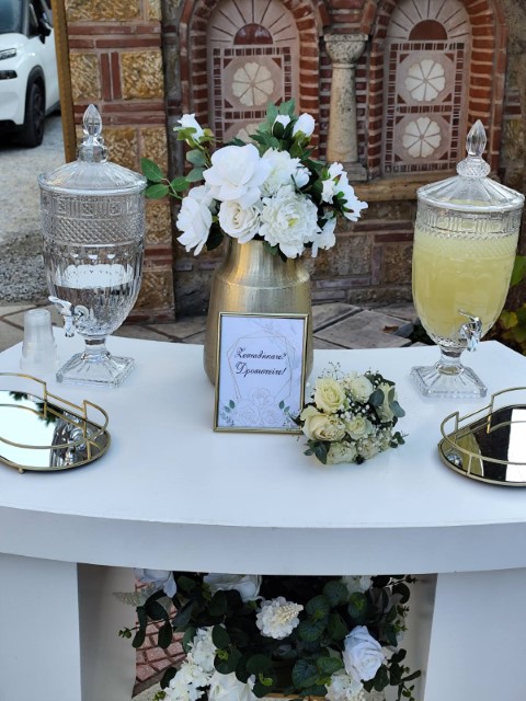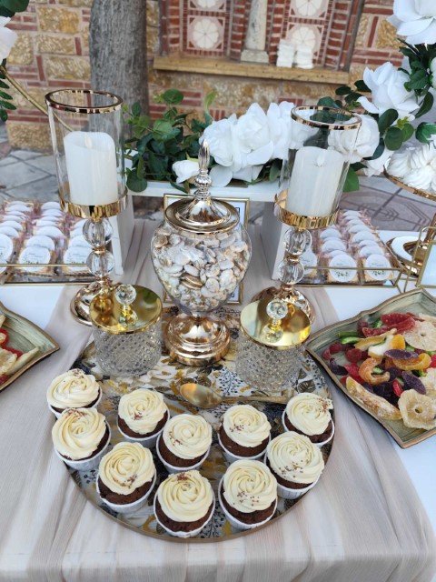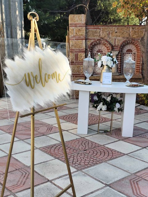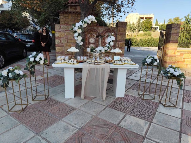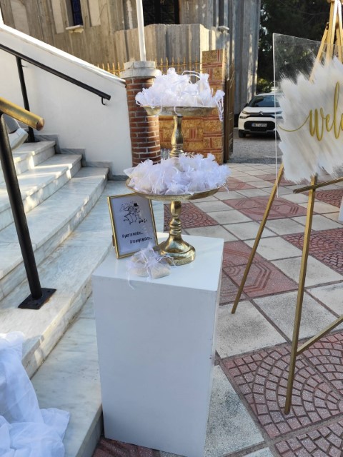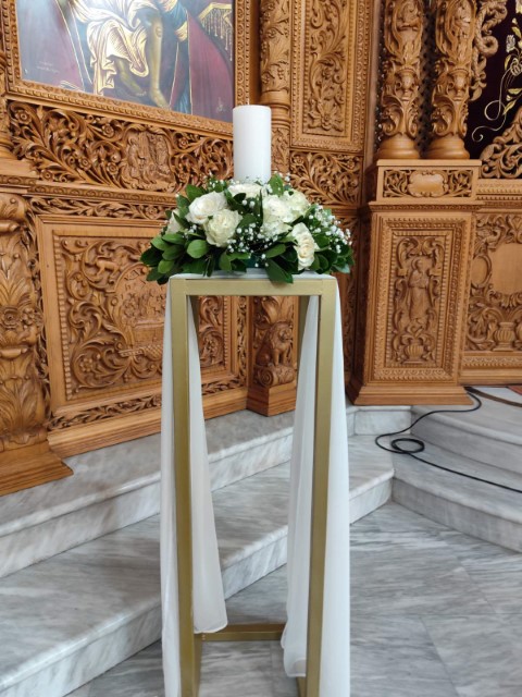 Elegant στολισμός γάμου με χρυσές λεπτομέρειες σε minimal γραμμές. Χρυσά διακοσμητικά βάζα, κομψά κηροπήγια και σταντ με όμορφες συνθέσεις λουλουδιών, δημιούργησαν ένα μοναδικό λαμπερό αποτέλεσμα.
