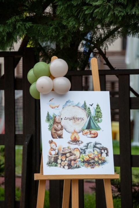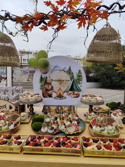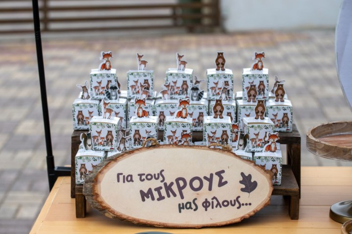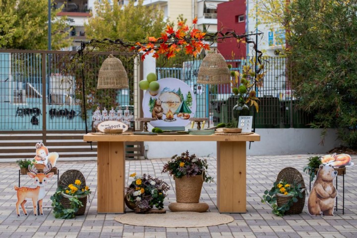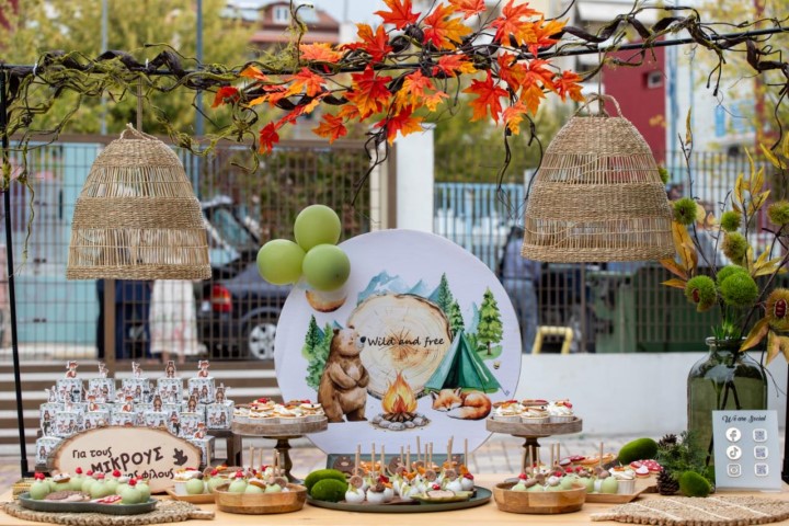 Έμπνευση από τη γαλήνη του δάσους και την ομορφιά της φύσης, δίνει ζωή σ' έναν ξεχωριστό στολισμό βάπτισης με θέμα τα ζωάκια του δάσους. Οι γήινες αποχρώσεις και τα φυσικά στοιχεία δημιουργούν ένα αρμονικό σκηνικό, γεμάτο ηρεμία και απλότητα. Ξύλινες λεπτομέρειες, φυσικές υφές και χαριτωμένες φιγούρες ζώων, συνθέτουν ένα καλαίσθητο concept. Ένα θέμα που αγκαλιάζει τη φύση και την παιδική αθωότητα.