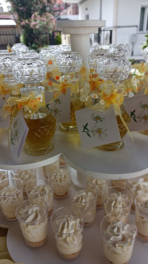 Αν σας αρέσει το ρομαντικό κοριτσίστικο ύφος, τότε σίγουρα θα σας κερδίσει το θέμα με τα χαμομηλάκια! Αποχρώσεις λευκού, κίτρινου και ροζ παστέλ πινελιές σε σημεία. Αέρινα υφάσματα, μπουκετάκια με χαμομήλια και μοναδικές διακοσμητικές λεπτομέρειες. Θεματικά γλυκά και λικέρ χαμομήλι συνδυασμένα όλα αρμονικά σε ένα μοναδικό αποτέλεσμα!