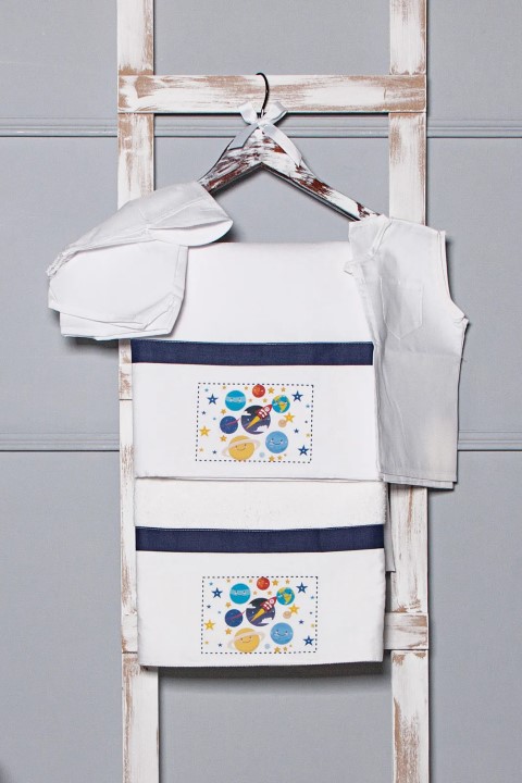Σετ λαδόπανα βάπτισης για αγόρι βαμβακερά, με θεματικό τύπωμα στην φάσα. Το σετ περιλαμβάνει πετσέτα, σεντόνι, εσώρουχα και καπελάκι. Συνδυάζεται με την αντίστοιχη τσάντα, λαμπάδα και μπομπονιέρα. Για αλλαγές στα χρώματα ή στο τύπωμα, επικοινωνήστε με το κατάστημά μας.