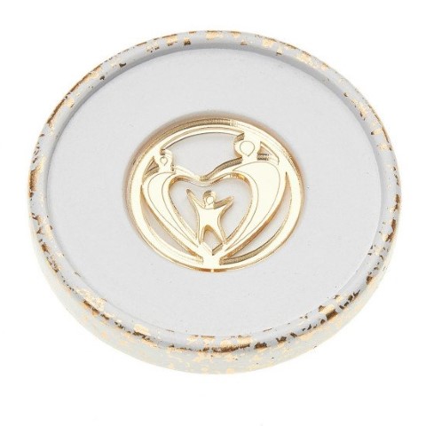 Μπομπονιέρα κεραμικό σουβέρ με plexiglass στο κέντρο και σχέδιο οικογένεια. Διάμετρος 10 εκ.