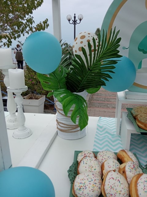 Θέμα ελεφαντάκι για τον μικρό Γιάννη σε αποχρώσεις μέντας, λευκού και μπέζ συνδυασμένα με χρυσά διακοσμητικά. Υπέροχο candy bar με λαχταριστές λιχουδιές και lemon bar που χαρίζει δροσιά στους καλεσμένους σας τις ζεστές μέρες του καλοκαιριού.