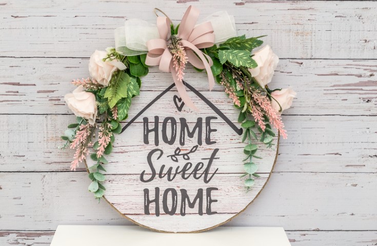 Ταμπέλα σε καφέ χρώμα με τριαντάφυλλα, για να διακοσμήσετε την εξώπορτα ή το τζάκι σας. Διάμετρος 30εκ.