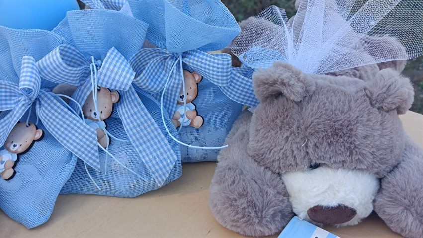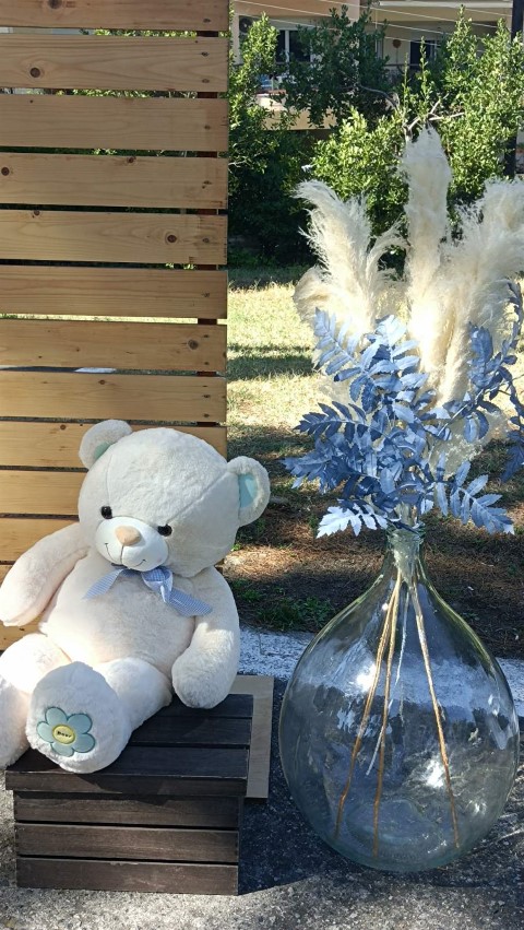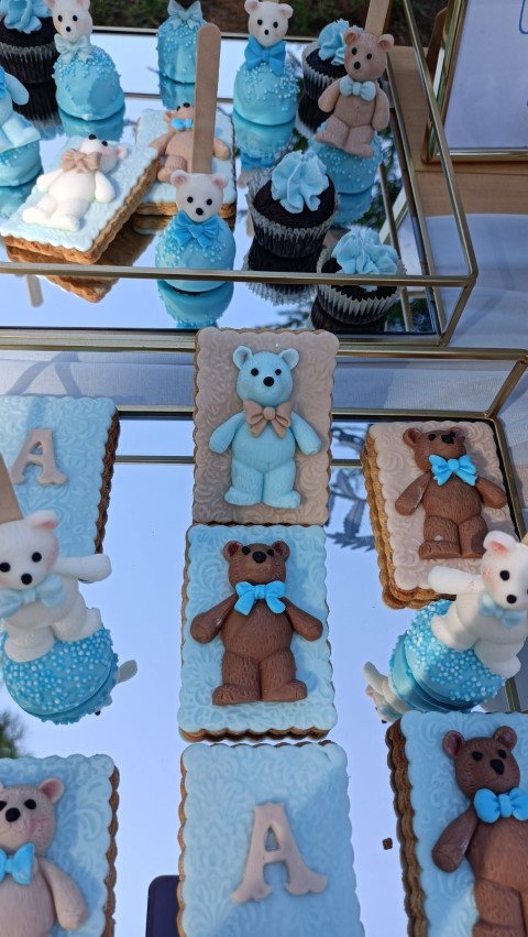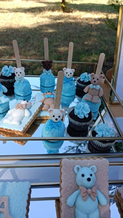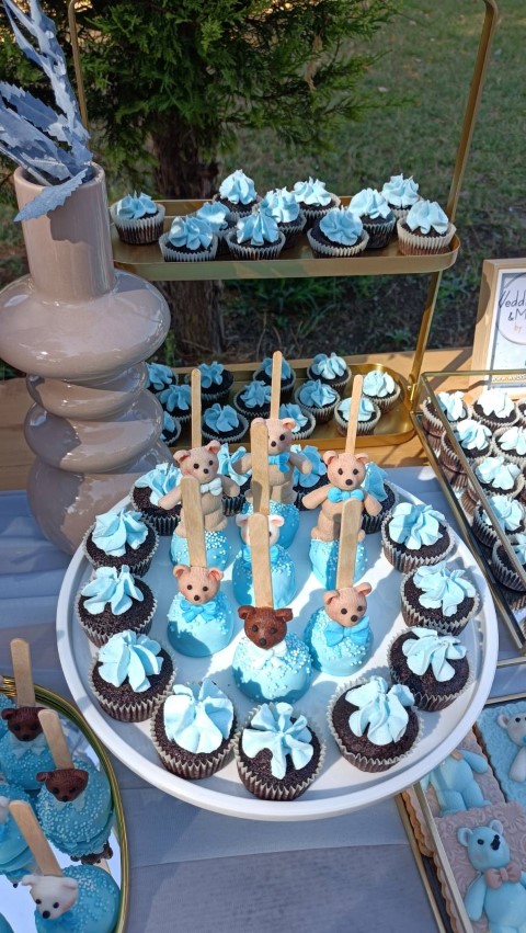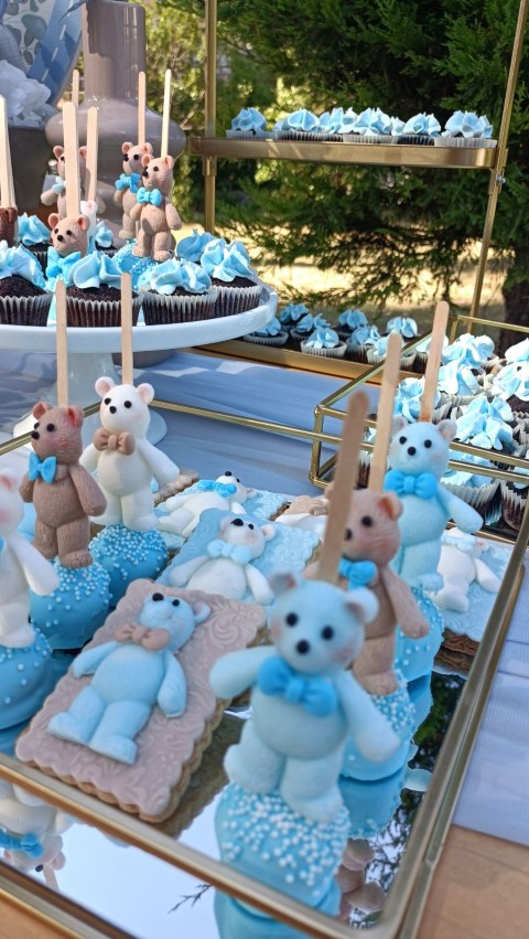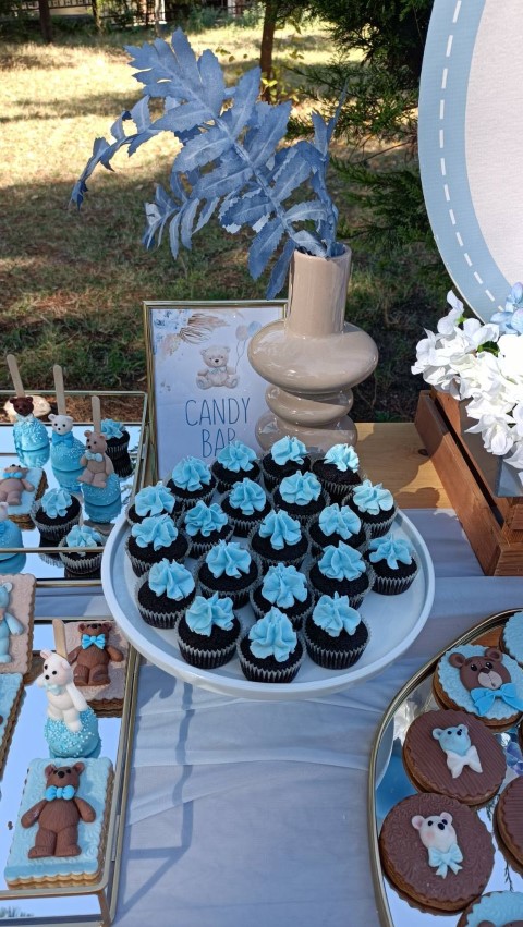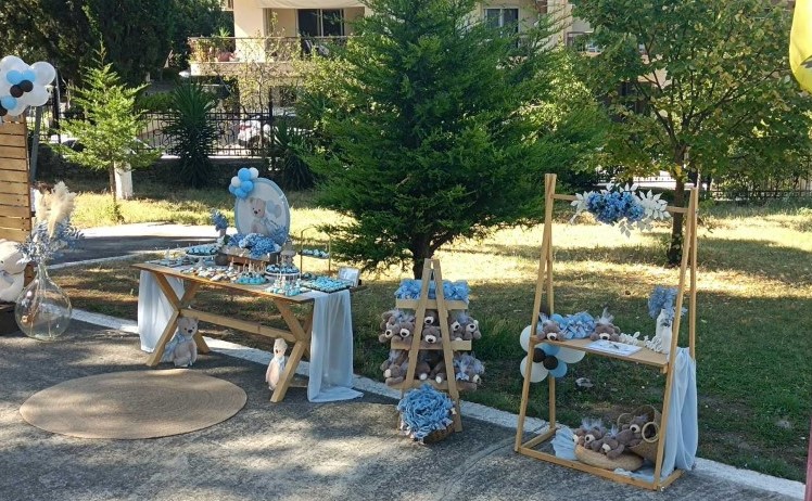 Ιδέες διακόσμησης με θέμα το αρκουδάκι που σίγουρα θα λατρέψετε. Ένα όμορφο σκηνικό σε αποχρώσεις του γαλάζιου με συνθέσεις μπαλονιών, ορτανσίες και pampas. Μπομπονιέρες αρκουδάκια που ξετρέλαναν τα παιδάκια, λαχταριστά γλυκά φτιαγμένα με φαντασία και τέχνη και μοναδικές λεπτομέρειες διακόσμησης. Ξεχώρισε το ξύλινο backdrop με τον γιγάντιο αρκούδο, όπου φωτογραφήθηκαν όλοι καλεσμένοι με τον μικρό Αλέξανδρο. Δείτε αυτό το στολισμό και επικοινωνήστε μαζί μας για να σχεδιάσουμε την βάπτιση που επιθυμείτε!