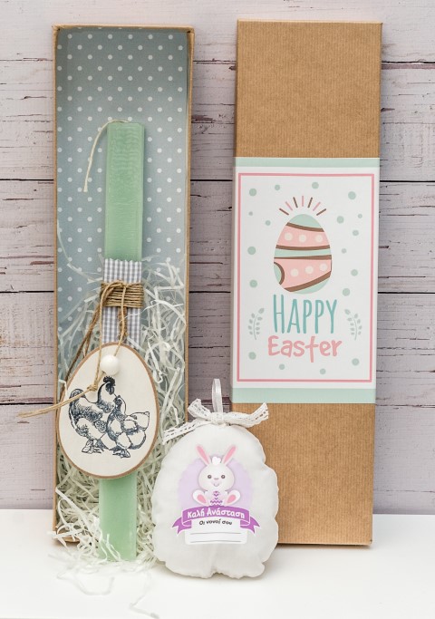 Κουτί με Πασχαλινή παράσταση ( 38x10x6 ). Περιέχει λάμπάδα με ξύλινο διακοσμητικό και αυγό από ύφασμα.