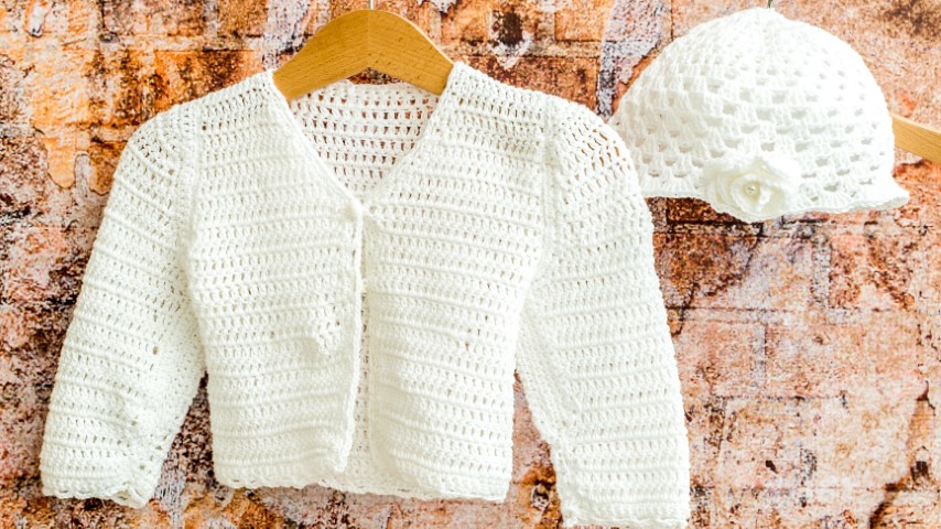 Χειροποίητο πλεκτό μπολερό με ασορτί καπελάκι, κατασκευασμένο από βαμβακερό νήμα. Πωλούνται και ξεχωριστά.