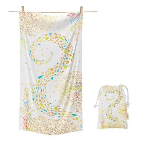 Υπέροχη πετσέτα θαλάσσης με σχέδιο magestic, περιλαμβάνει πουγκάκι αποθήκευσης. Είναι πολύ απορροφητική και στεγνώνει τρεις φορές πιο γρήγορα από κάθε άλλη πετσέτα. Δεν κρατάει άμμο, αλλά και πολύ χώρο στις αποσκευές σας!