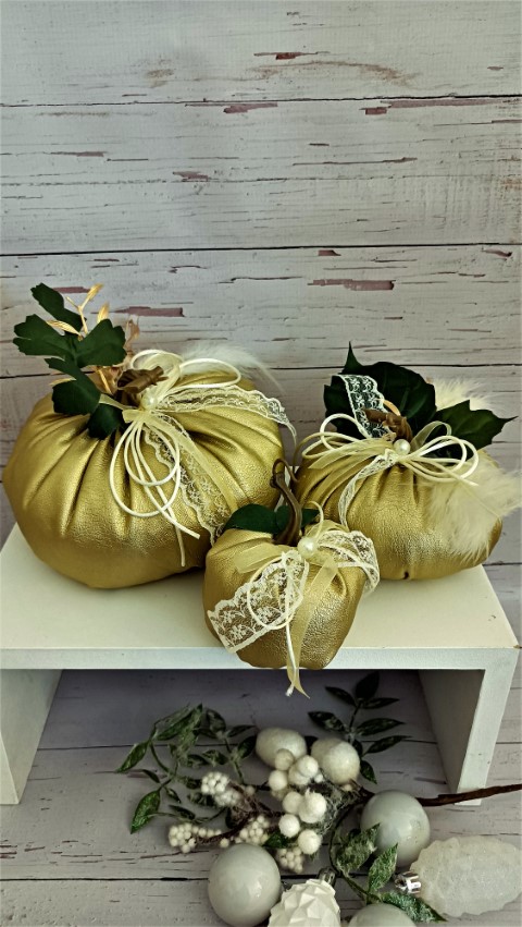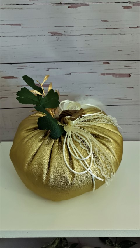 Κολοκύθα χειροποίητη, κατασκευασμένη από δερματίνη σε χρυσό χρώμα. Διάσταση κολοκύθας φάρδος17εκ. x ύψος15εκ.