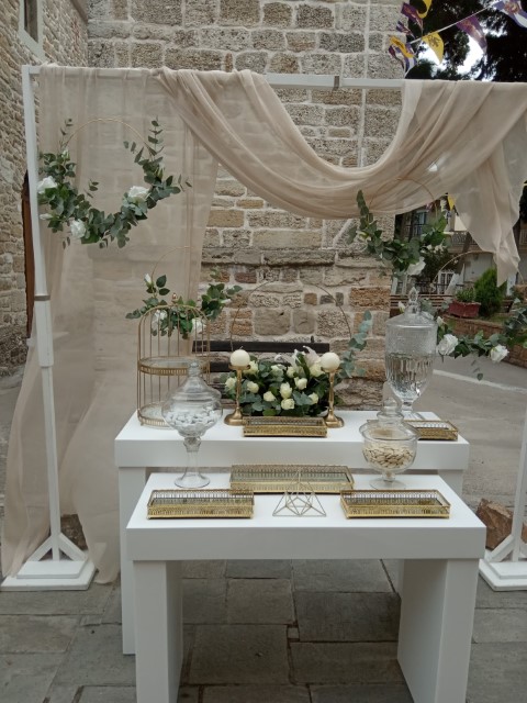 Ένας υπέροχος γάμος που συνδυάζει ρομαντικά και μοντέρνα στοιχεία δημιουργώντας ένα μοναδικό elegant αποτέλεσμα. Εντυπωσιακή διακόσμηση στα σκαλοπάτια και στην είσοδο της εκκλησίας, κρύσταλλα, μουσελίνες, χρυσά στεφάνια και συνθέσεις από ιβουάρ τριαντάφυλλα και ευκάλυπτο, συνθέτουν τον απόλυτο συνδυασμό της απλότητας με την κομψότητα.
