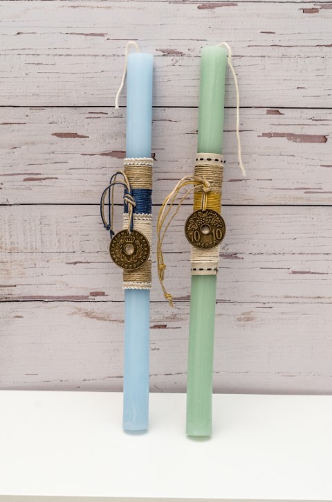 Λαμπάδα με τρύπια δεκάρα σε δύο χρώματα.