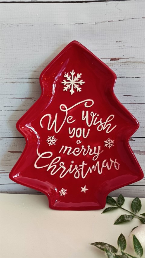 Κόκκινη Χριστουγεννιάτικη κεραμική πιατέλα δεντράκι. Διαστάσεις: 24x20εκ.