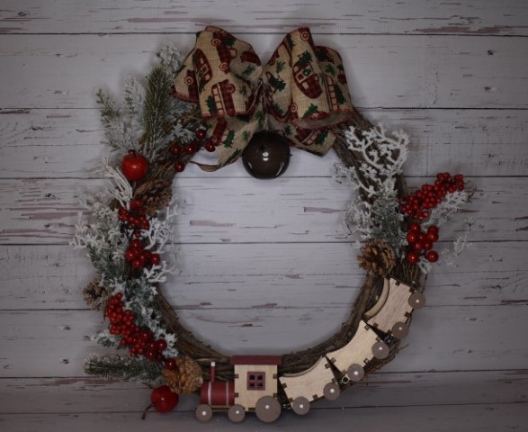 Χριστουγεννιάτικο στεφάνι λυγαριάς με τρενάκι