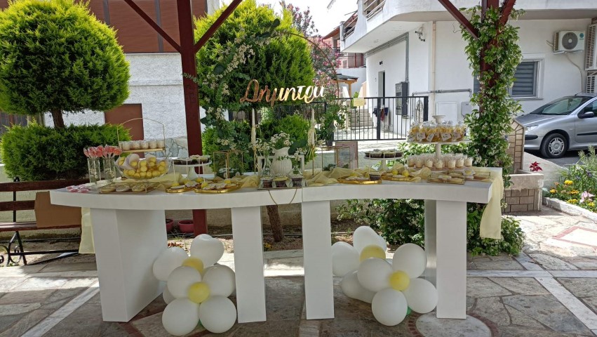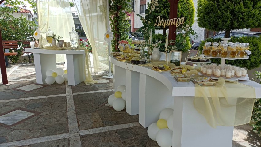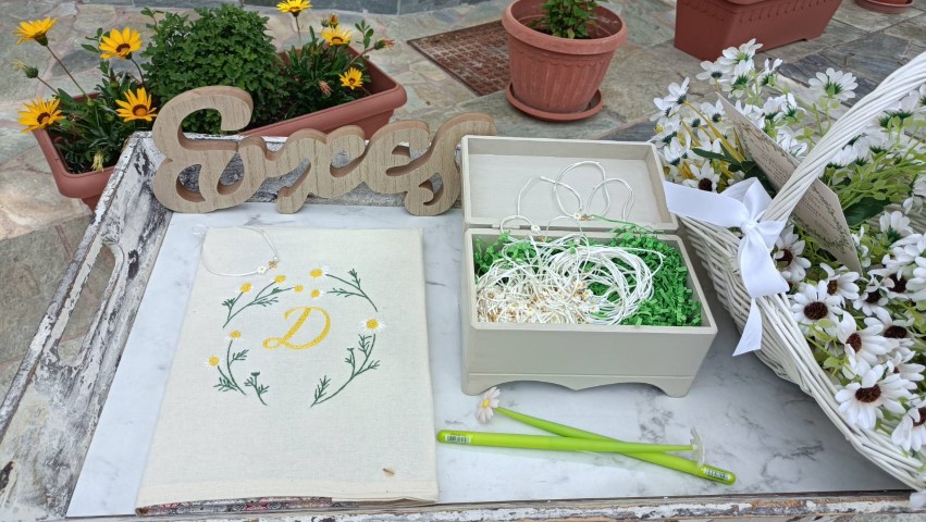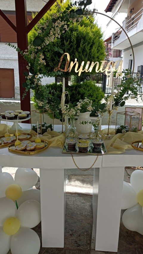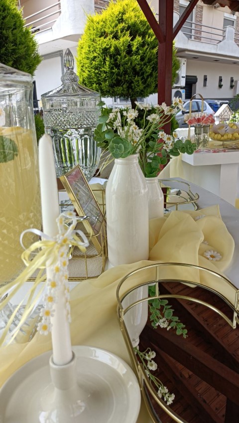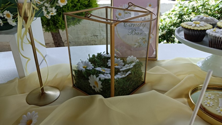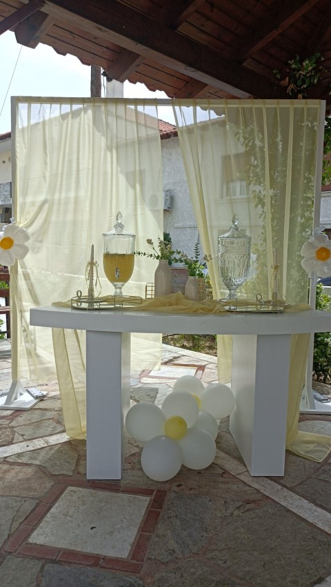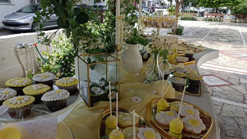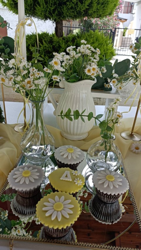 Αν σας αρέσει το ρομαντικό κοριτσίστικο ύφος, τότε σίγουρα θα σας κερδίσει το θέμα με τα χαμομηλάκια! Αποχρώσεις λευκού, κίτρινου και ροζ παστέλ πινελιές σε σημεία. Αέρινα υφάσματα, μπουκετάκια με χαμομήλια και μοναδικές διακοσμητικές λεπτομέρειες. Θεματικά γλυκά και λικέρ χαμομήλι συνδυασμένα όλα αρμονικά σε ένα μοναδικό αποτέλεσμα!