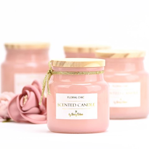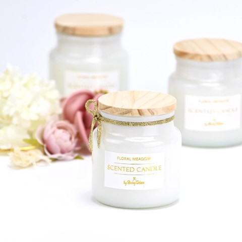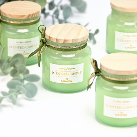 Μπομπονιέρα κεράκι με ξύλινο καπάκι σε τρία διαφορετικά χρώματα και αρώματα. Λευκό χρώμα floral meadow, ροζ floral chic, πράσινο floral green 75gr. Δεμένη με πέντε κουφέτα. Ελάχιστη παραγγελία 40 τεμάχια.