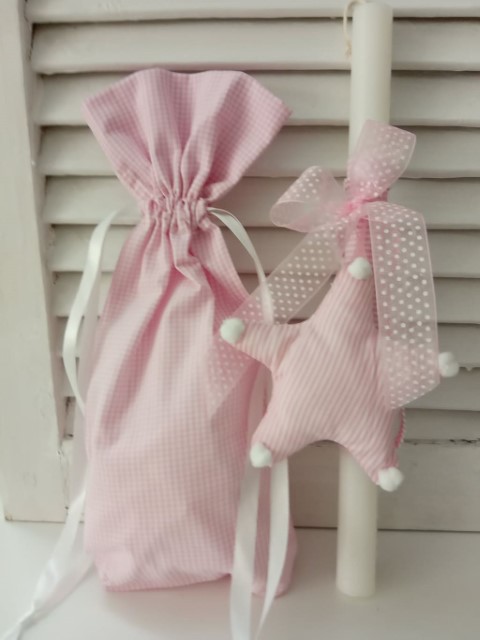 Πασχαλινή λαμπάδα για κορίτσι με υφασμάτινο αστεράκι και ασορτί πουγκί που μπαίνει μέσα η λαμπάδα.Για τυχόν αλλαγές επικοινωνήστε με το κατάστημά μας.