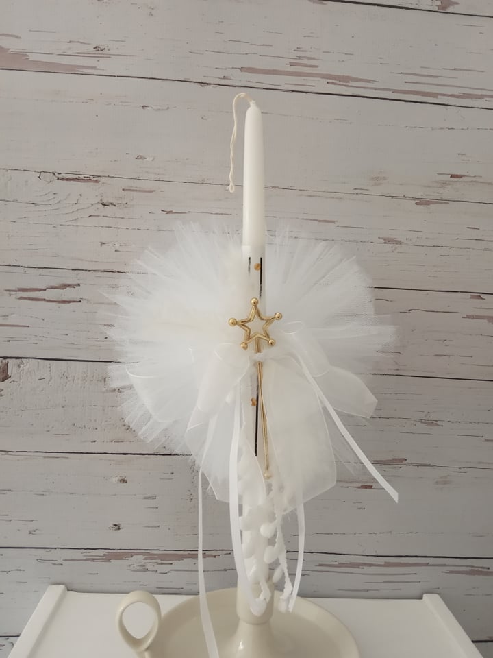 Πασχαλινή λαμπάδα με πομ πομ και πεταλούδα
