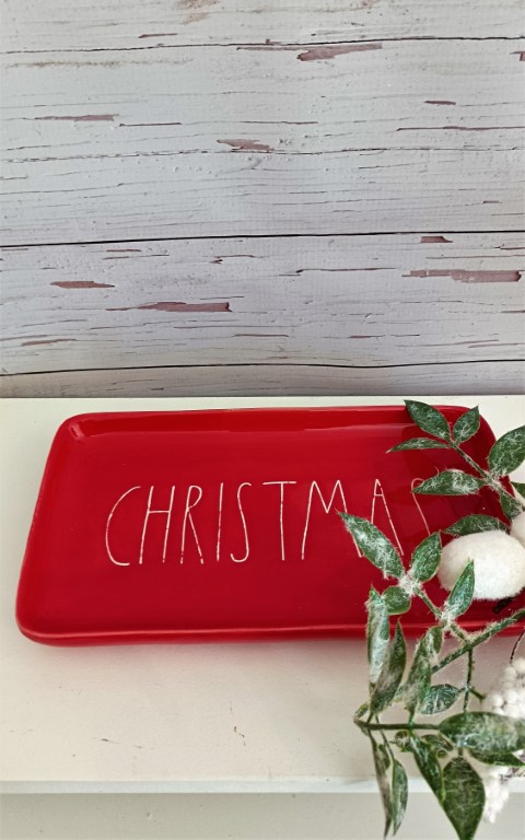 Χριστουγεννιάτικη κόκκινη κεραμική πιατέλα Christmas. Διαστάσεις: 23x12,5εκ.