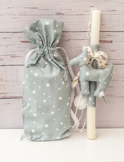 Πασχαλινή λαμπάδα με υφασμάτινο σκυλάκι και πουγκί
