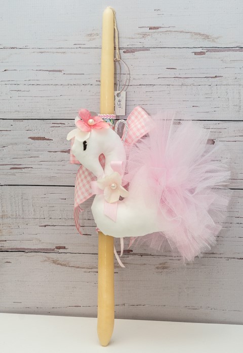 Πασχαλινή λαμπάδα για κορίτσι κύκνος με ροζ πομ πομ.