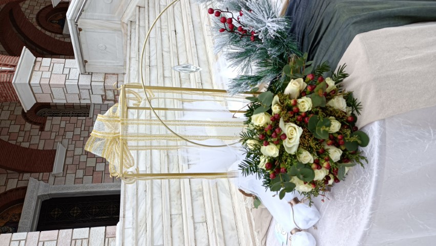Ξεχωριστός γάμος με εοτραστικό χαρακτήρα καθώς έγινε την δεύτερη μέρα των Χριστουγέννων. Χρυσές και κυπαρισσί αποχρώσεις, υφάσματα σε βελούδο και κρεπ, συνθέσεις λουλουδιών με Χριστουγεννιάτικο χαρακτήρα, μοναδικά διακοσμητικά στοιχεία, συντέλεσαν σε ένα υπέροχο αποτέλεσμα.