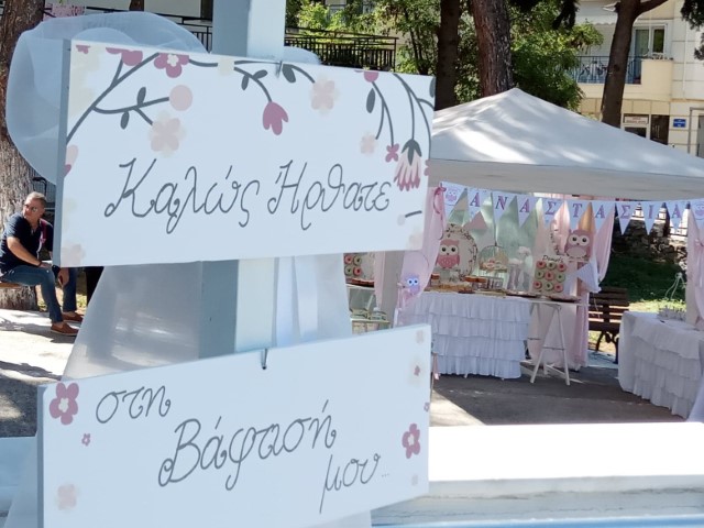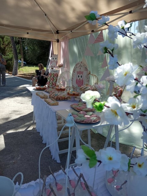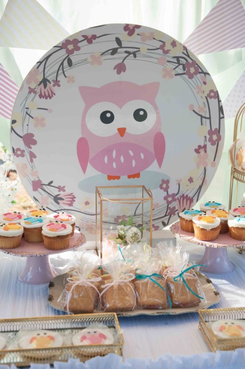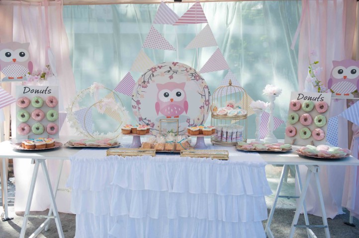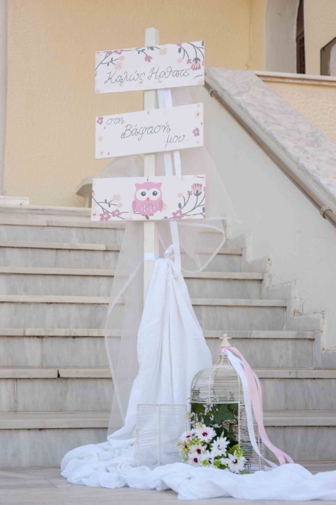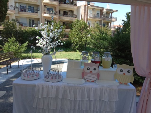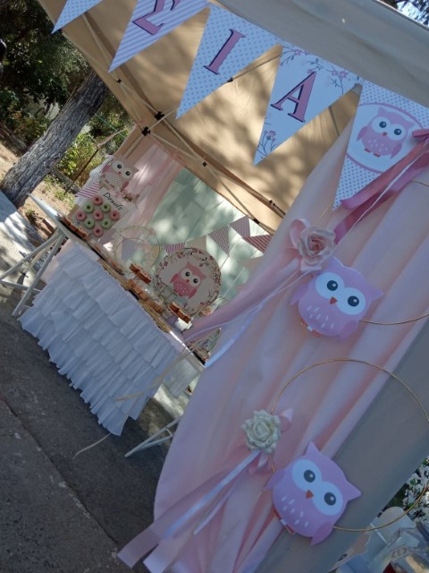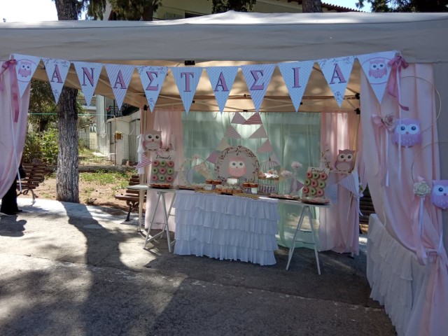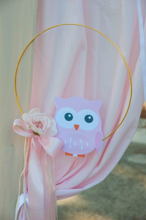 Ρομαντική βάπτιση με θέμα την κουκουβάγια σε παστέλ αποχρώσεις του ροζ, κίτρινου, μέντας και σιελ με χρυσές λεπτομέρειες που δημιουργούν ένα ιδιαίτερο και ξεχωριστό αποτέλεσμα. Το κιόσκι  είναι διακοσμημένο με αέρινα υφάσματα, φιγούρες κουκουβάγιας, μεταλλικά στεφάνια με λουλούδια και σημαιάκια σε χρώματα και σχέδια αρμονικά συνδυασμένα μεταξύ τους. Candy bar με πολλές λιχουδιές και δροσιστικό υποβρύχιο που μας ταξιδεύει σε άλλες εποχές!