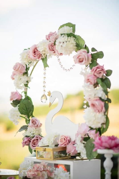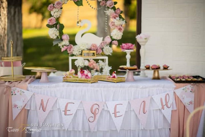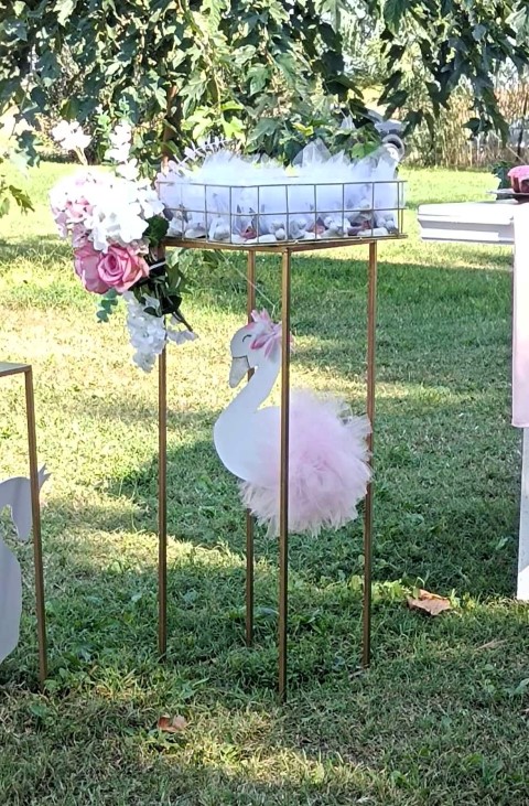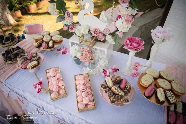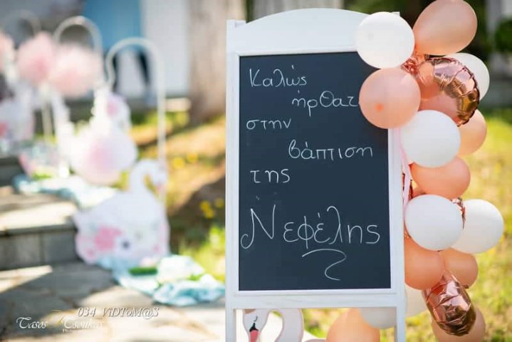 Όμορφος στολισμός βάπτισης σε παραμυθένιο ξωκλήσι έξω από την Κοζάνη. Εντυπωσιακός διάδρομος από μεταλλικά στικ τα οποία ενώνονται μεταξύ τους με κορδέλες και τρέσες λουλουδιών. Αέρινα υφάσματα, φιγούρες κύκνων, ροζ πομ πομ, συνθέσεις λουλουδιών και μοναδικές λεπτομέρειες διακόσμησης, δημιούργησαν ένα υπέροχο ρομαντικό κοριτσίστικο σκηνικό!