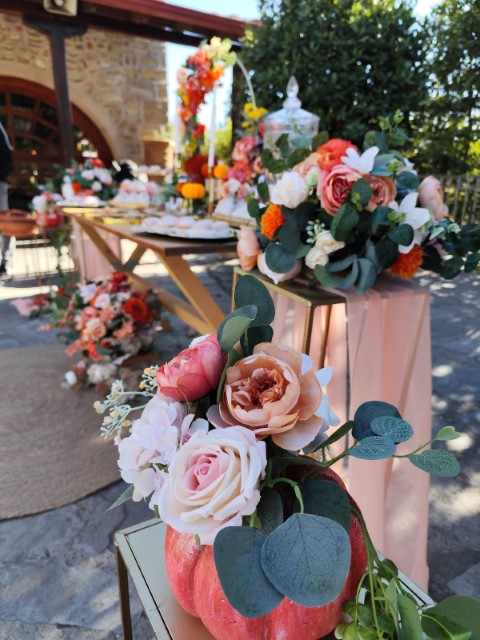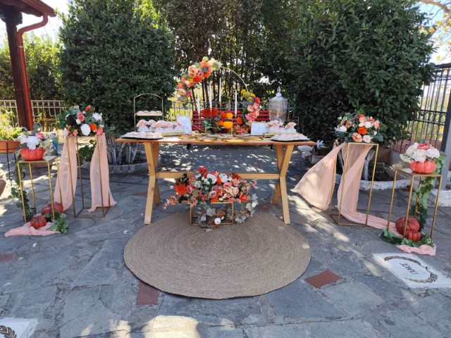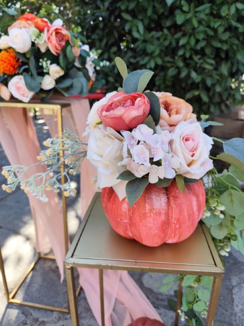 Το φθινοπωρινό θέμα βάπτισης κολοκύθες έρχεται σε πλήρη αρμονία με την εποχή. Υπέροχα ζεστά γήινα χρώματα στις συνθέσεις λουλουδιών και φυσικά στις κολοκύθες. Αέρινα υφάσματα, κομψά κηροπήγια, λαχταριστά θεματικά γλυκά και ξεχωριστές λεπτομέρειες διακόσμησης που σίγουρα θα εντυπωσιάσουν εσάς και τους καλεσμένους σας.