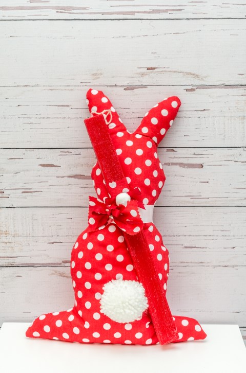 Λαμπάδα με μαξιλάρι κόκκινο πουά σε σχήμα κουνελάκι.