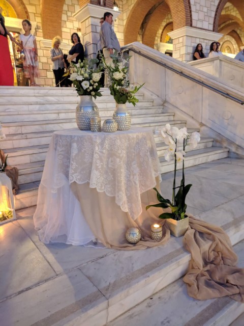 Elegant γάμος με λαμπερά στοιχεία διακόσμησης συνδυασμένα με υφάσματα σε αποχρώσεις του μπεζ και του ιβουάρ με λευκές ορχιδέες και συνθέσεις με λυσίανθους σε έναν εντυπωσιακό και κομψό συνδυασμό που θα σας κερδίσει.