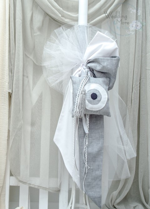 Χειροποίητη λαμπάδα βάπτισης για αγόρι, από βαμβακερό και λινό ύφασμα εξαιρετικής ποιότητας. Κεντρικό στοιχείο το μαξιλαράκι με αλπικαρισμένο μάτι. Συνδυάζεται με την αντίστοιχη τσάντα, λαδόπανο και λαδοσέτ. Μπορούν να γίνουν αλλαγές στα χρώματα κατόπιν συνεννοήσεως με το κατάστημά μας.