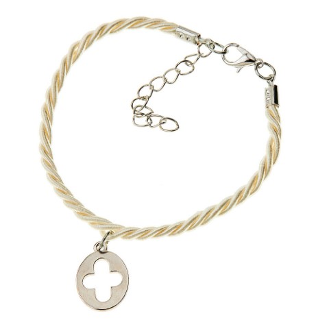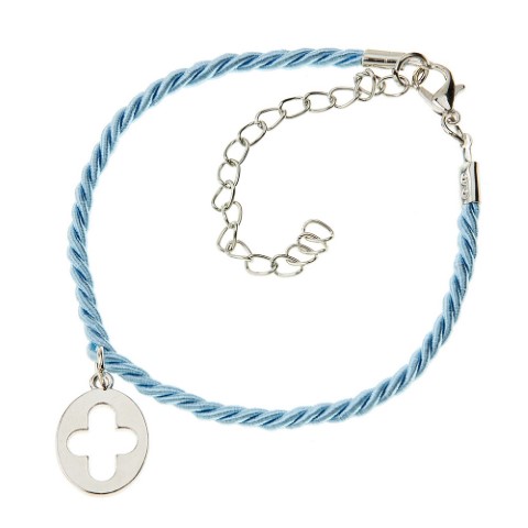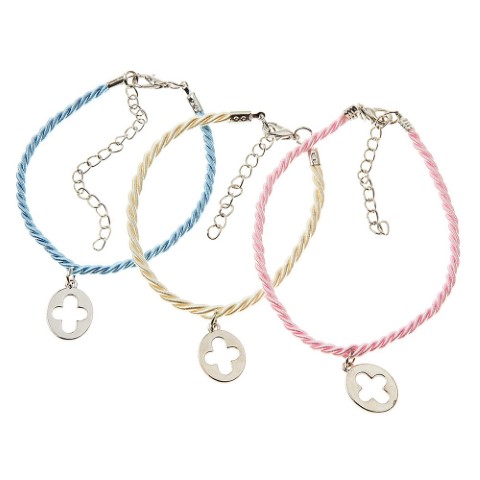 Μαρτυρικό βάπτισης βραχιόλι με κορδόνι και ασημί σταυρό. Διατίθεται σε τρία χρώματα εκρού, ροζ και γαλάζιο. Η τιμή αναφέρεται στη συσκευασία των 50 τεμαχίων.