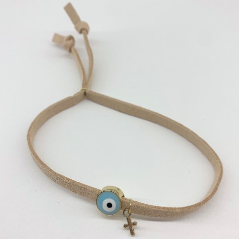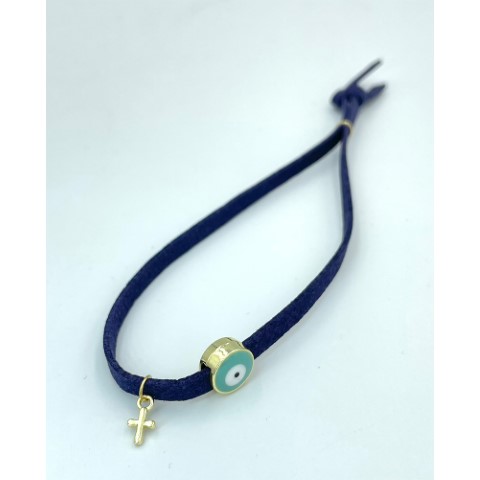 Μαρτυρικό βάπτισης με δέρμα suede και επίχρυσο σταυρό