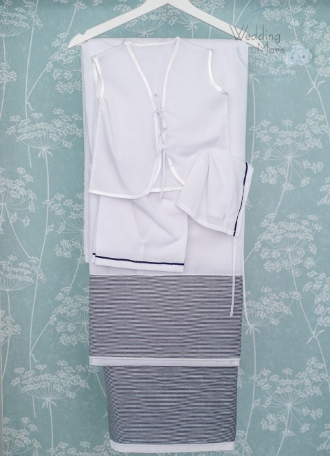 Σετ λαδόπανα βάπτισης για αγόρι από λευκά βαμβακερά υφάσματα, με ριγέ φάσα και λευκά ρέλια. Το σετ περιλαμβάνει πετσέτες μεγάλη και μικρή, σεντόνι,εσώρουχα και καπελάκι. Συνδυάζεται με την αντίστοιχη τσάντα, λαμπάδα και μπομπονιέρα. Μπορούν να γίνουν αλλαγές στα χρώματα και στα υφάσματα κατόπιν συνεννοήσεως με το κατάστημά μας.